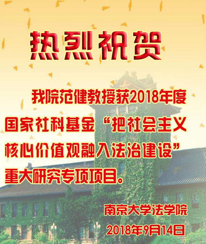 热烈祝贺公司范健教授获2018年度国家社科基金“把社会主义核心价值观融入法治建设”重大研究专项项