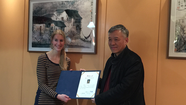 张异宾书记向公司“中国法与比较法”硕士双学位项目首批毕业生代表颁发学位证书