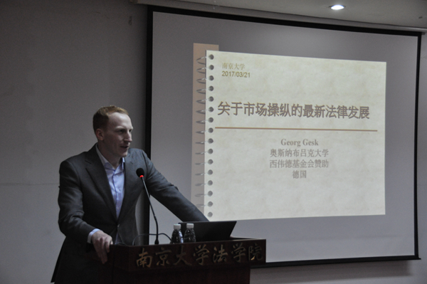 2017年3月21日,BB贝博艾弗森中德法学研究所“中德法学论坛”第118期在鼓楼校区逸夫管理科学楼1205报告厅成功举行。本期论坛的报告人是德国奥斯纳布吕克大学的葛祥林教授(Prof.Dr.Georg Gesk),报告主题为“关于市场操...