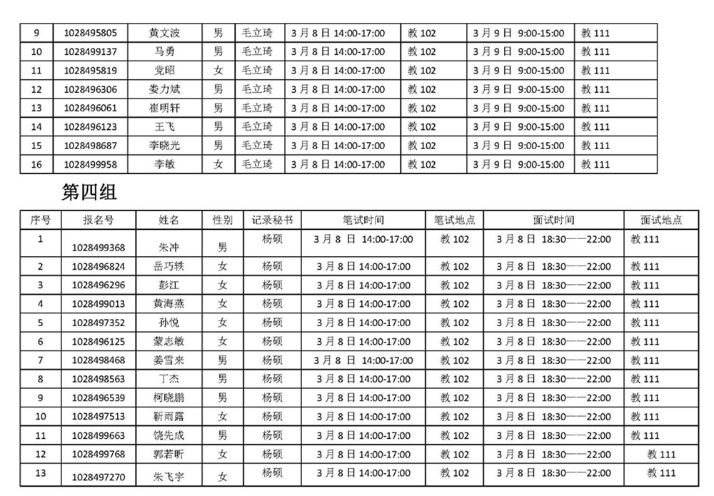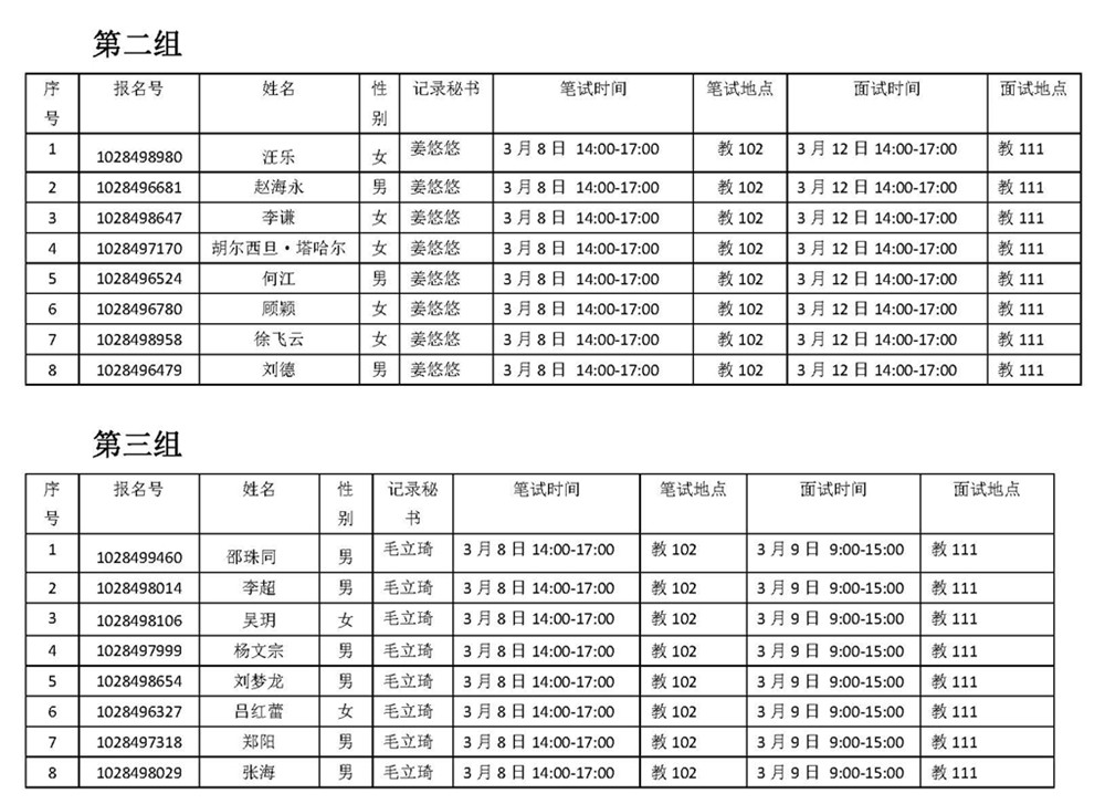 三、面试分组: