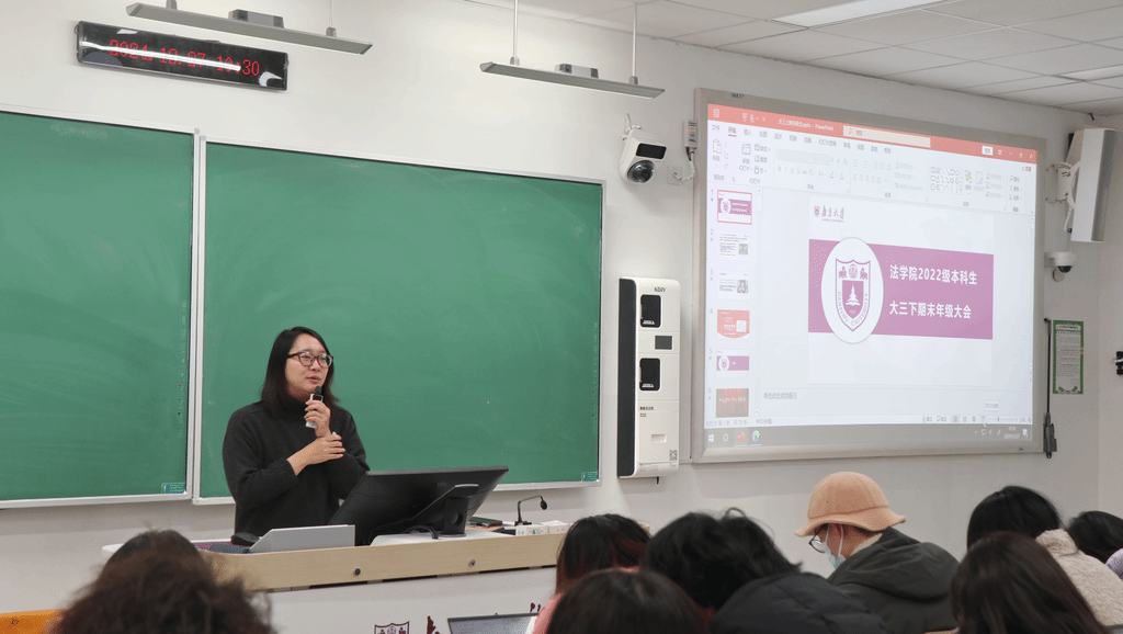 本科生第一党支部书记、辅导员路敏玥老师对本学期的班级建设进行了全面总结与点评,并针对期末复习与假期安排给予了细致的指导。路老师详细说明了课程安排、期末考试要求及考试纪律,提供了科学备考的建议。同时,她对下学期的第二课堂活动、假期实习、保研条件及综合考评进行了详细解读,特别强调同学们应正确看待考试成绩,注重多维度发展,避免将个人价值单一地与成绩挂钩,鼓励大家实现全面健康成长。最后,路老师叮嘱同学们合理调节备考压力,保持良好的身心状态,积极应对期末考试。