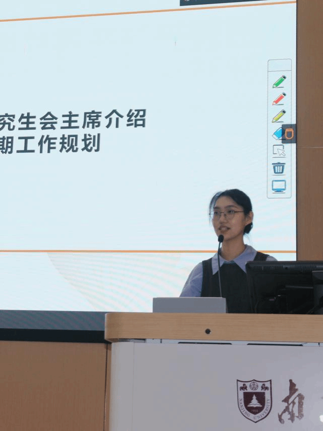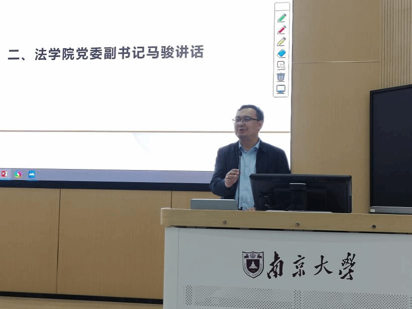 马骏老师在讲话中指出,以往研会的工作经历和工作成绩可圈可点、值得肯定;对研会内部的工作氛围、工作方式予以认可。在会上,马骏老师表达了对新一届研会同学的期待和要求。希望新一届研会成员进一步明确研会定位,强调研会在党委领导下坚持“全心全意为同学服务”的宗旨,进一步加强工作作风建设、进一步加深与同学之间的紧密联系。勉励研会进一步筑牢思想阵地战线,为浦口校区的公司建设贡献南法力量。