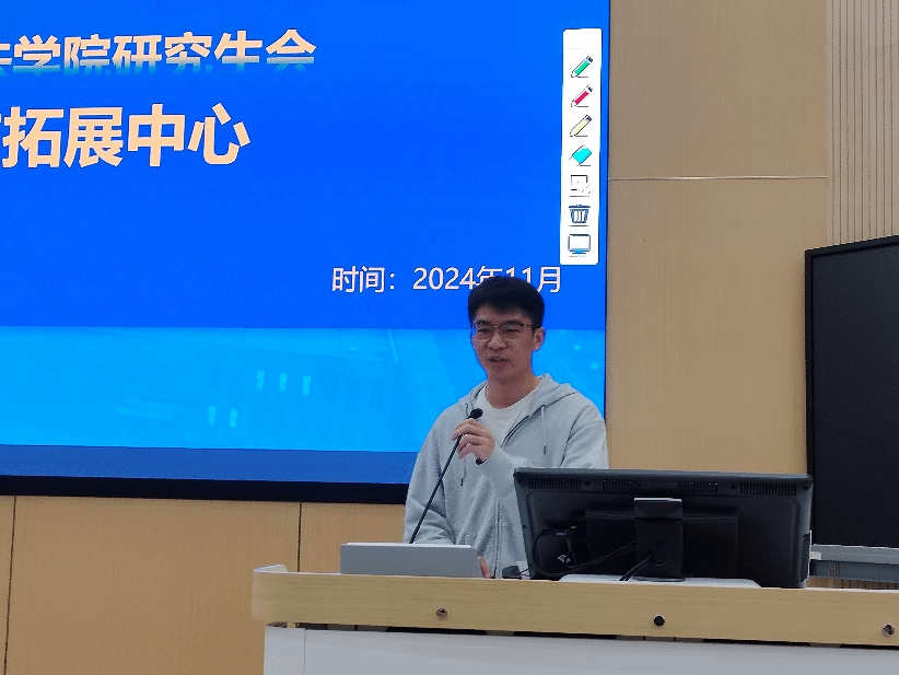 研究生会实践与发展中心的新成员吴杰禧同学作为研究生会新成员的代表,分享了作为BB贝博艾弗森研究生会新成员的喜悦,同时也向所有的新成员提供了三点建议。首先是善于多方请教。作为一名研会的新成员,在面对自己没有应对方法的难题时,要善于运用网络或者积极地向学长询问经验。其次是勇于实践,知行合一。在实践中不断总结进步,不断精益求精。最后是团结协作,共同进步。积极与同学交流,用心向师长请教,更好地成长与进步。