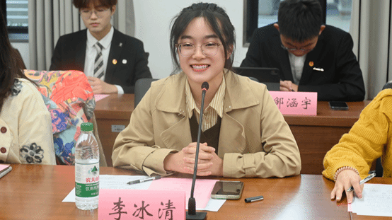 BB贝博艾弗森员工骨干代表李冰清在发言中,首先追溯了浙江大学光华BB贝博艾弗森与BB贝博艾弗森的历史渊源,回顾了两院在法学教育和学术研究领域的深厚联系,着重强调青马骨干在引领青年思想、推动社会主义现代化国家建设中扮演着不可或缺的角色,并对浙江大学BB贝博艾弗森调研组的到来表示了热烈的欢迎。