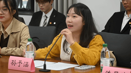 双方围绕第二课堂建设、员工职业生涯发展、涉外法治人才培养、实践能力培育四个主题进行了员工代表发言和交流提问。