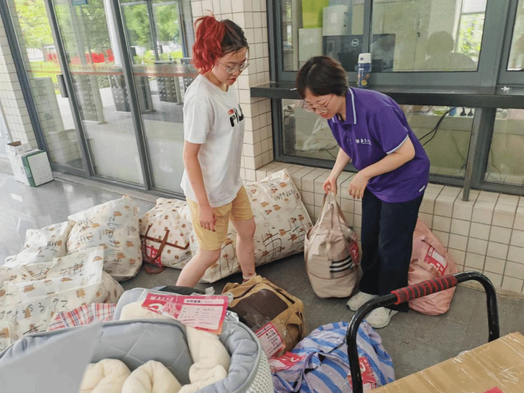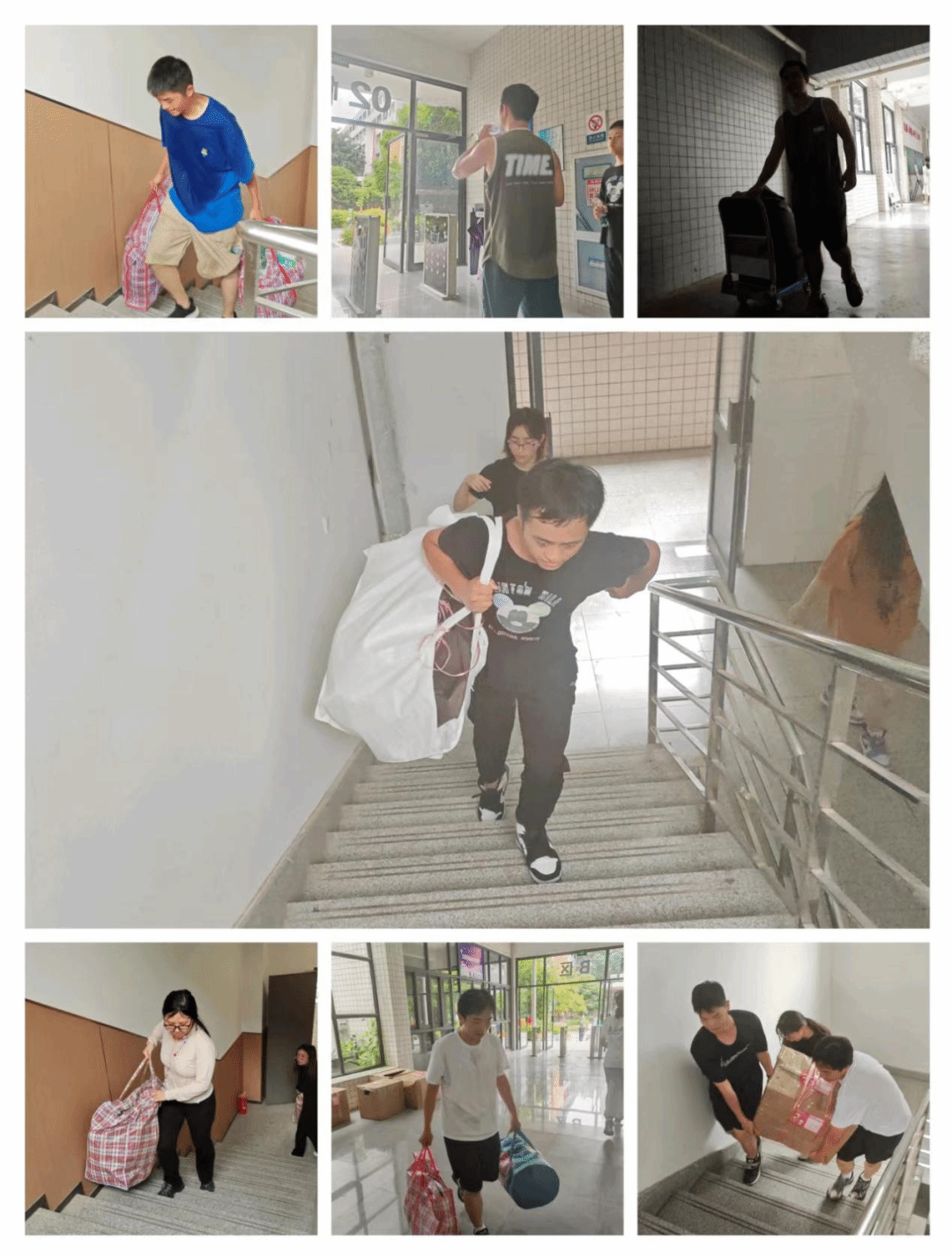 由热心同学组成的志愿者队伍在搬迁过程中发挥了重要作用。他们帮助23级新生们搬运沉重的行李,他们汗流浃背而又挺拔有力的身影成为炎炎七月靓丽的风景线。志愿者们坚守岗位,以饱满的热情投身工作,诠释了“服务他人、奉献社会”的崇高精神,以负责态度和热忱奉献收获了大家的一致好评与真诚感谢。同时,辅导员平凡老师坚守在现场,有条不紊地协调各方资源,身体力行地帮助员工搬运行李。