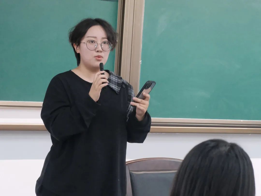高嘉悦同学分享了自己在员工工作中产生的感受。她曾在各级团学组织的多个岗位上服务同学,尤其在志愿公益领域有所深度参与,以实际行动践行了志愿者精神。她号召同学们广泛探索自己的兴趣与特长,在各自的领域内精益求精、深入耕耘。