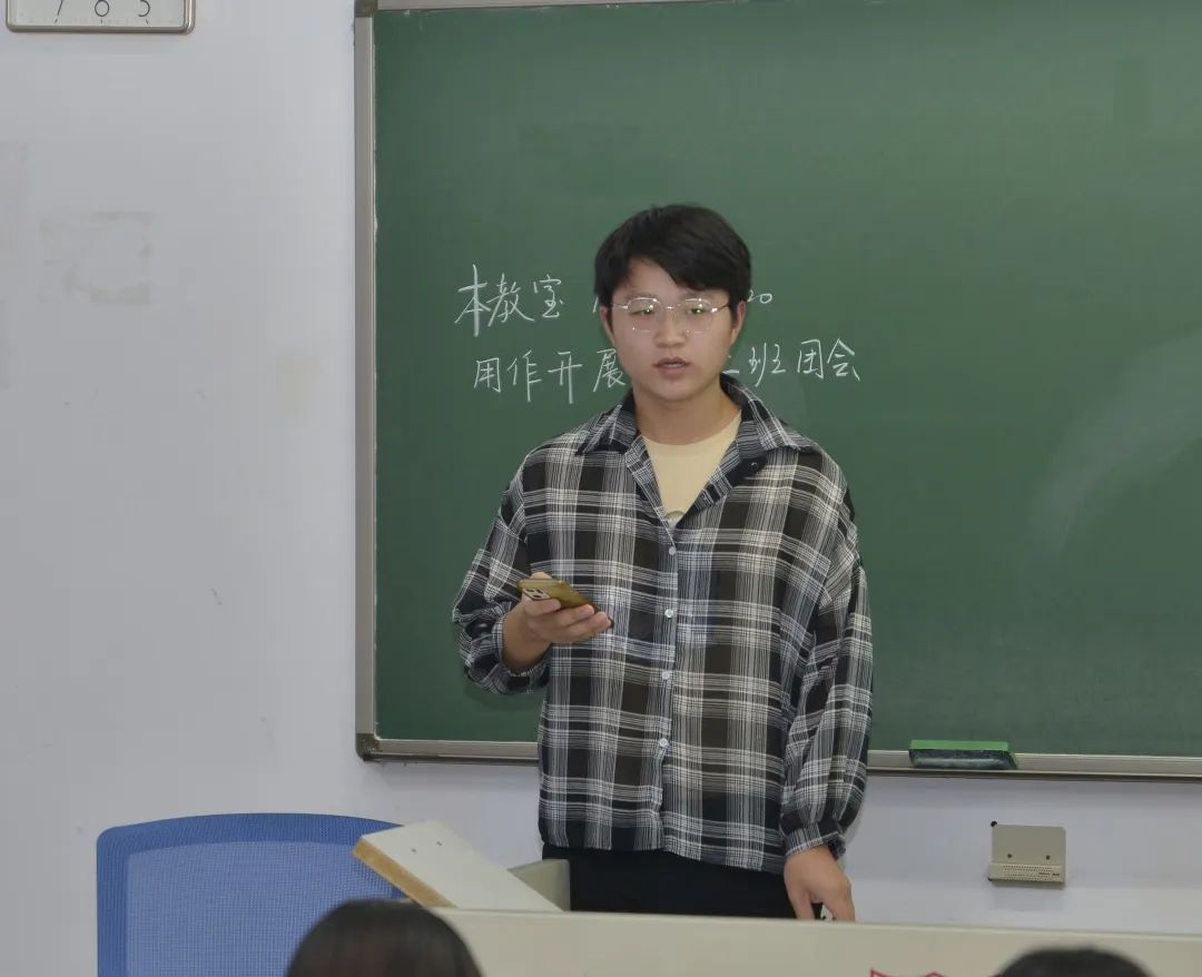 本次主题班团会采取室内与室外相结合,理论与实践相统一的形式,团支部书记丁曜主持会议。