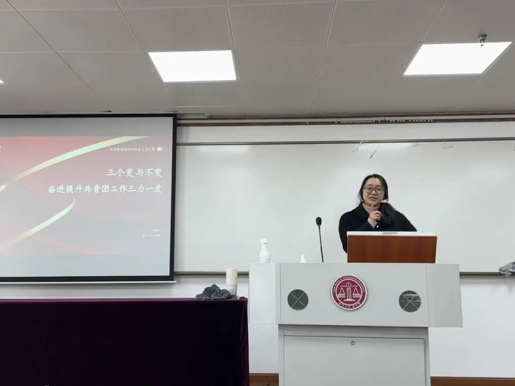 会议开始,马骏老师首先对新学期团委工作提出了要求,他强调,新的学期BB贝博艾弗森团委要牢记高校立德树人的根本任务,以学习宣传习近平法治思想为工作主线,牢牢把握政治性、先进性、群众性的工作要求,提升BB贝博艾弗森团委在校内团学工作的贡献度。考虑各校区、各阶段同学们的真切需求,关注第二课堂提升、就业指导等重点问题,服务师生,举办同学满意的各项活动。
