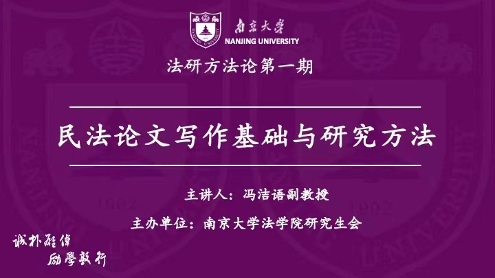 从同学们的需求出发,通过邀请具有丰富学术经验的老师或学长学姐,分享切实可行的科研方法与建议,帮助同学们建立法学研究的思维与方法、实现学术研究领域的入门与深耕,形成独立思考、自主科研的能力培养奋进科研的信心与投身学术的热情。