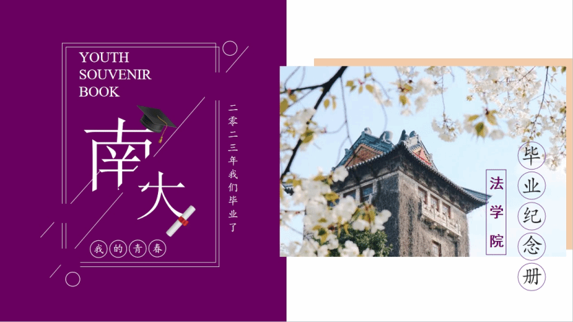 精心设计制作2023年毕业纪念册。语重心长的老师寄语、同学之间还没来得及说完的话、无可替代的南大回忆留影,都被收藏进这本厚厚的电子纪念册中,为这段难忘的研究生时光留下隽永的色彩,将同学之间的珍贵情谊、老师的谆谆嘱托,对青春、对未来的无限畅想努力保留。