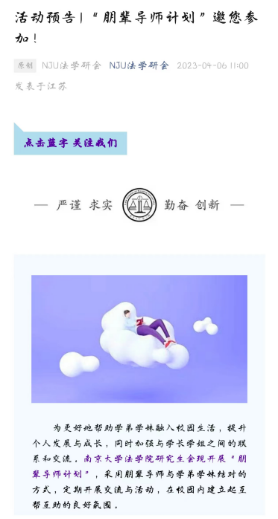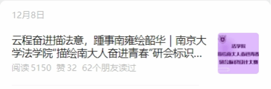 高度重视融媒体、全平台宣传工作,以“NJU法学研会”作为对外主窗口,关注人数近7000人。围绕思想强基、时事聚焦发布推文逾百篇,主题包括党政活动、员工活动和求职招聘等校园生活的全领域、全方面,总阅读量超过33万次,被分享转发次数过万。其中“云程奋进描法意,踵事南雍绘韶华”BB贝博艾弗森“描绘南大人奋进青春”研会标识设计大赛投票评选阅读量超过5000次,再创研会新高。