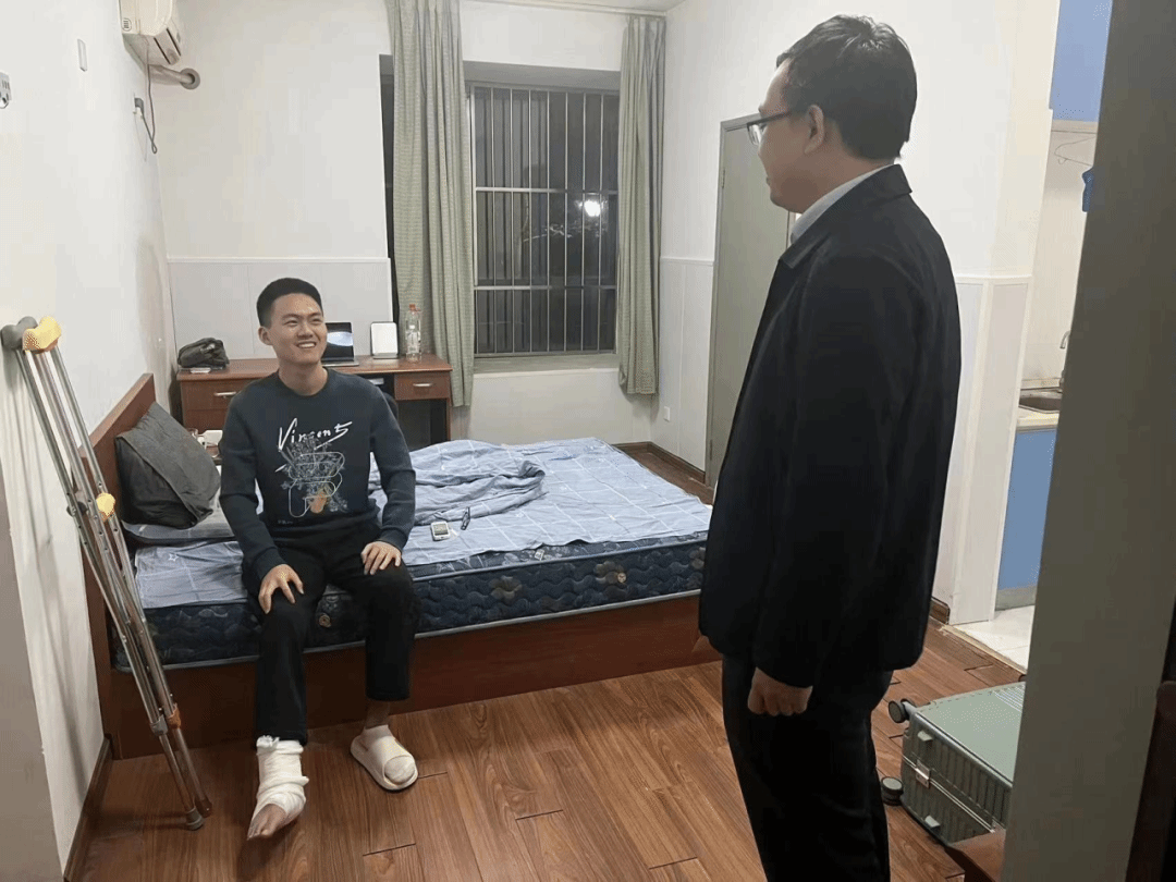 座谈会在温馨愉快的氛围中结束,同学们意犹未尽。会后,马骏老师与王翠兰老师在浦口校区看望了骨折的同学。