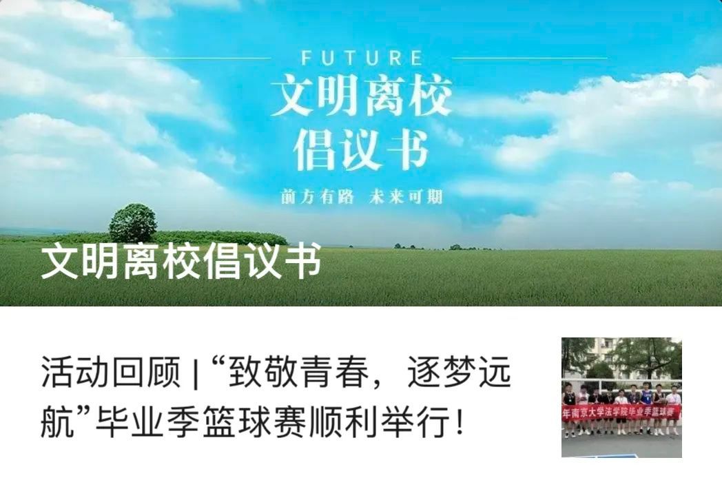 以奋进之声,传爱校深情。BB贝博艾弗森向全体2023届研究生发出文明离校倡议书,呼吁全体毕业生继续保持南大人昂扬向上的精神风貌,争当文明使者,展示积极向上形象。BB贝博艾弗森深入开展毕业生人身安全、财产安全、健康安全、求职安全、心理安全等多维度教育,倡议同学们在离校前继续爱护校园设施,在离校中强化“安全第一”防范意识,在离校后心系祖国、情系南大,以报效国家、服务人民为自觉追求,在各自的岗位上不懈努力,为全面建设社会主义现代化国家、实现中华民族伟大复兴的中国梦积极贡献自身智慧和力量。