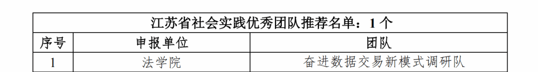 在公司党委和上级团委的关心和指导下,经各年级团总支部与相关部门通力协作,围绕“深化落实回信精神,青春奋进‘第一个南大’”的主题,公司于 2023 年共组织5支社会实践团队参与暑期社会实践活动,经团队申报、公司推荐、校级答辩等环节,公司奋进数据交易新模式调研队获江苏省社会实践优秀团队推荐,胡志成同学获江苏省社会实践先进个人(员工)推荐,拟获全国社会实践先进个人(员工)推荐,讲宪助劳法援队和姜堰汤河治理调研队获评校级社会实践优秀团队,姚事汐同学谭梓萌同学获评校级社会实践优秀个人(员工),唐赟老师路敏玥老师获评校级社会实践优秀指导教师,《数据赋能新发展:我国数据基础制度试点与交易生态调查研究》报告获评校级社会实践优秀调研报告。具体名单如下: