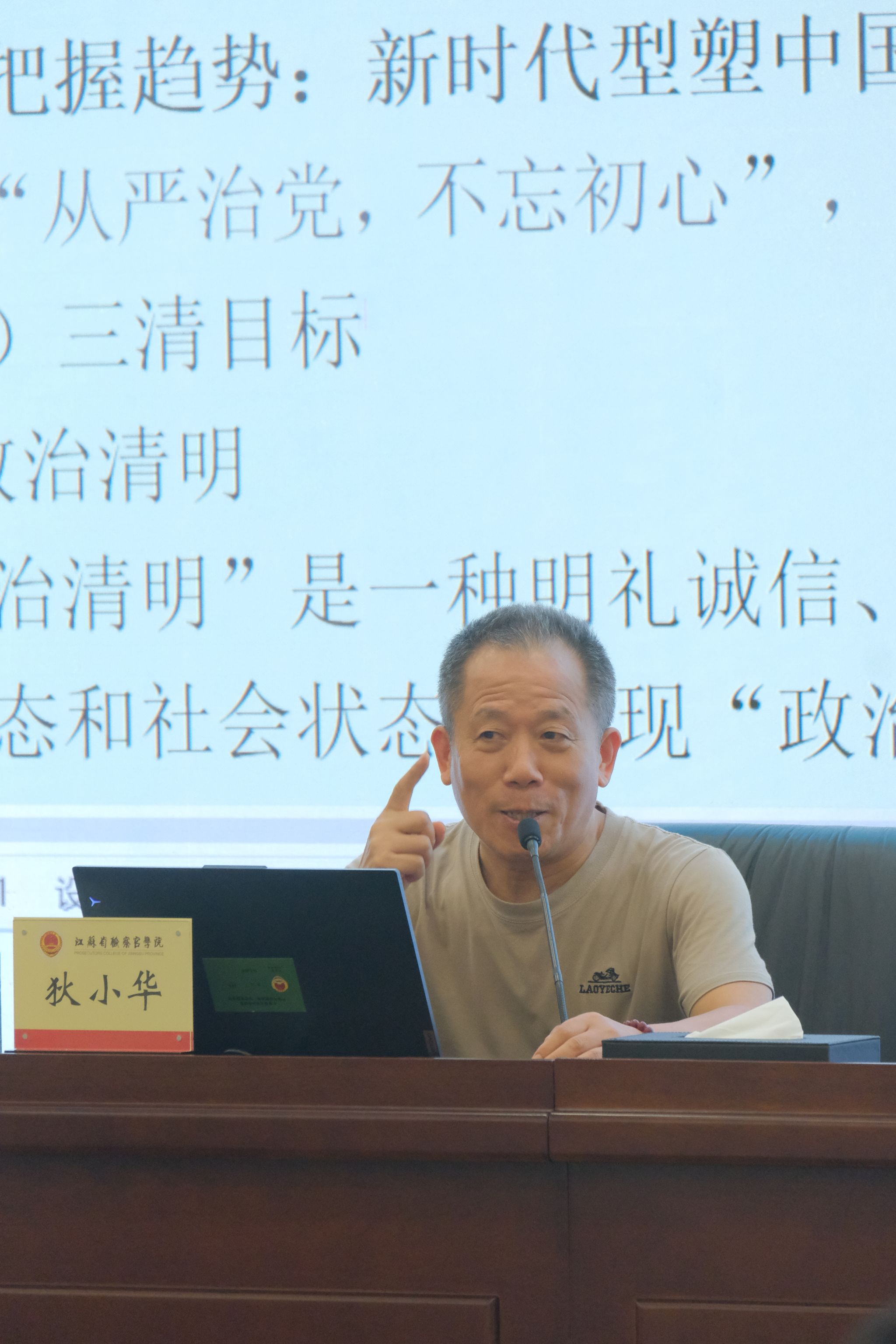 8月18日上午,BB贝博艾弗森党委理论讲师团成员、BB贝博艾弗森教授狄小华为师生学员作“新时代反腐倡廉新模式”专题授课。“腐败是危害党的生命力和战斗力的最大毒瘤,反腐败斗争必须常抓不懈、久久为功。”讲座中,狄小华围绕习近平总书记关于党风廉政建设和反腐败斗争的重要论述,结合党的二十大报告中对全面从严治党的新要求,深刻且系统地解答了在新时代的全新挑战下,党员同志应如何精准回应人民群众的期待,切实彰显新作为。学员们专注聆听、潜心思考,认真领悟全面从严治党的战略方针,对“全面从严治党永远在路上”的内涵有了更深刻的理解。