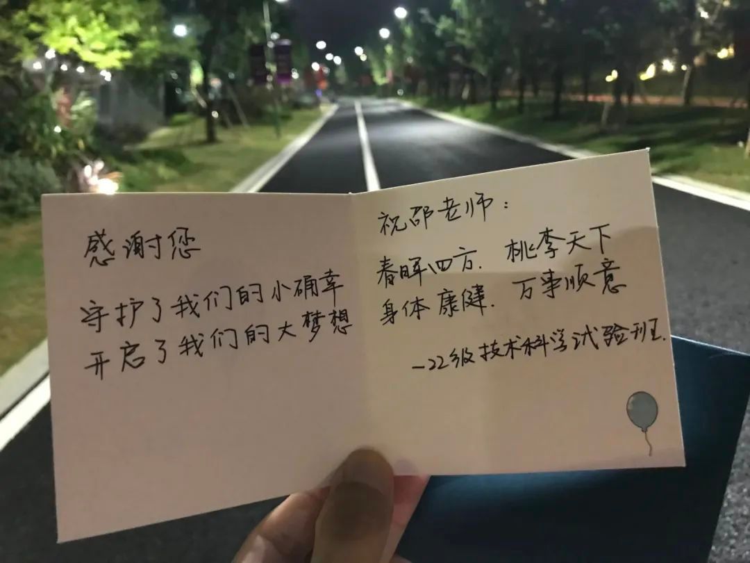 江南夜雨中的南大苏州校区,南老员工会给老师们准备了温馨卡片。