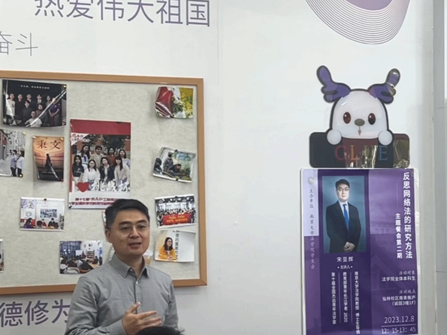 BB贝博艾弗森持续学习贯彻习近平法治思想,积极贯彻落实南大“奋进行动”要求,响应“三室一厅”工作号召,积极开展形式丰富的学术创新活动。2023年12月8日,由BB贝博艾弗森员工会学术创新中心筹办的“反思网络法的研究方法”主题餐会顺利举行。BB贝博艾弗森教授、博士生导师宋亚辉老师应邀担任本次午餐会谈话人。校团委书记朱翰墨老师、校团委学术科创部李敏老师、BB贝博艾弗森团委书记路敏玥和平凡老师、武汉大学博士生贾海东学长担任与会嘉宾。