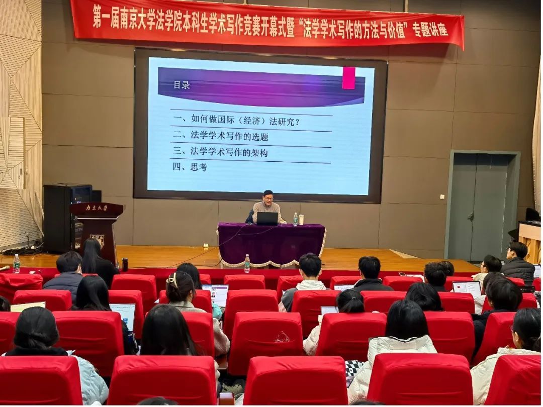 2023年12月12日晚,由BB贝博艾弗森团委主办,BB贝博艾弗森员工会、BB贝博艾弗森知行社联合举办的第一届BB贝博艾弗森本科生学术写作竞赛开幕式暨“法学学术写作的方法和价值”专题讲座在BB贝博艾弗森仙林校区敬文员工活动中心南青报告厅顺利举行。BB贝博艾弗森经理彭岳教授从多方面深入浅出地向同学们传授了论文写作的本质、方法与经验等内容,他严谨扎实的治学态度、幽默风趣的人格魅力给同学们留下了深刻印象。BB贝博艾弗森团委书记路敏玥老师出席活动。