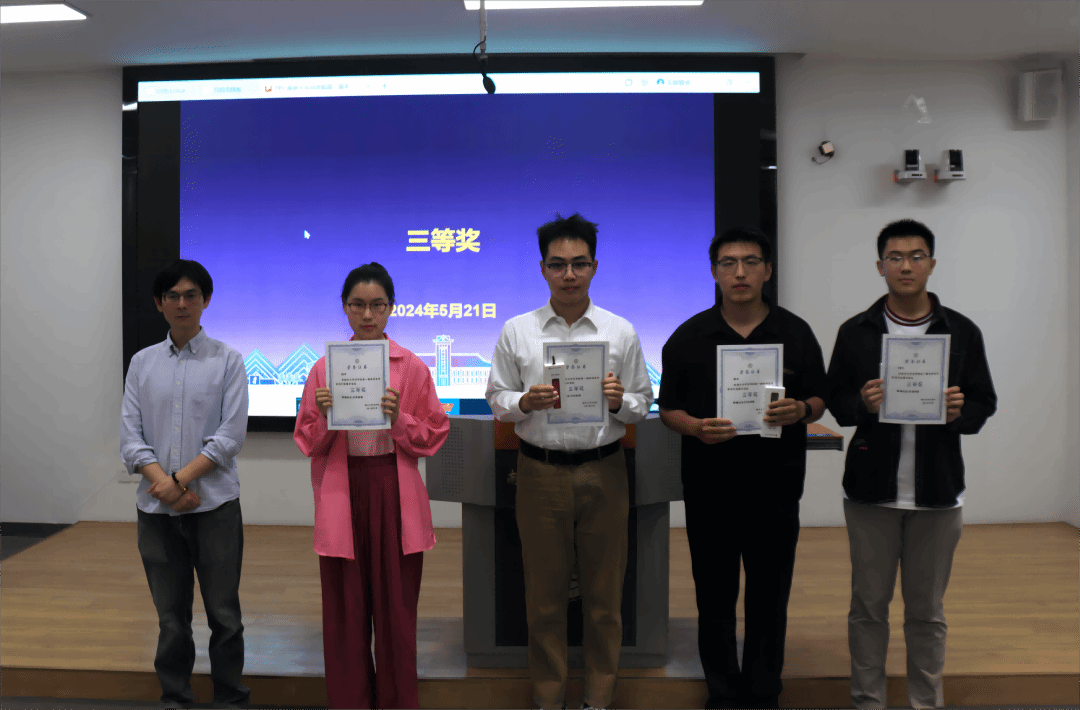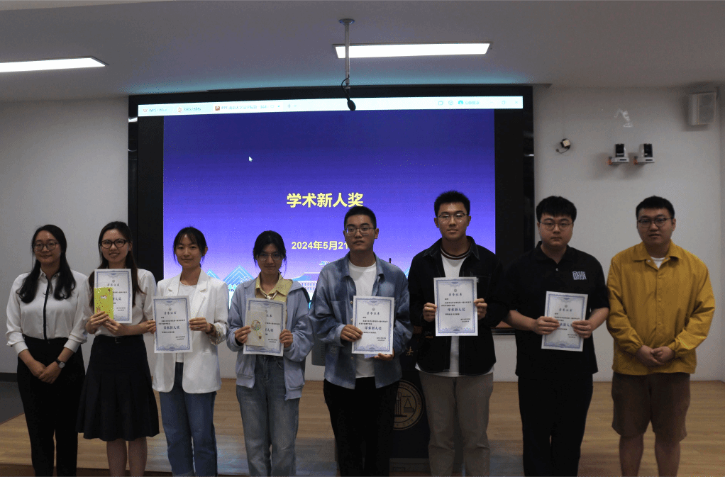 颁奖典礼上,BB贝博艾弗森副经理陈坤老师,党委副书记马骏老师,冯洁语老师、金健老师、路敏玥老师分别为获一等奖、二等奖、三等奖、学术新人奖的同学们颁发奖状和奖品。