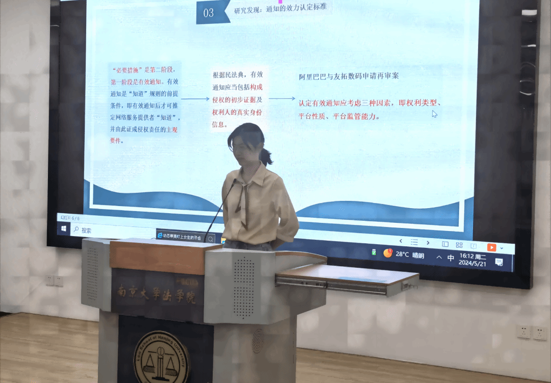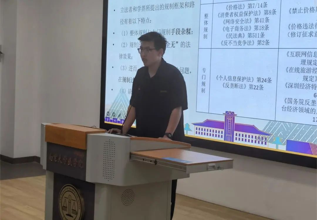 在论坛现场,学术论文汇报选题广泛,涵盖经济法学、民法学、宪法与行政法学、诉讼法学、国际法学、理论法学等诸多领域,研究选题既有信息网络时代的“通知-必要措施”原则、算法定价监管、RPM规制等,也有优秀传统法治文化中儒法思想的现代阐释,补救履行制度、孳息制度、匿名言论权体系构建等民法、宪法与行政法领域的基础研究更是彰显教义学传统风采……相关论文紧扣时代脉搏,视角新颖,体现了BB贝博艾弗森本科生对社会热点话题的密切关注。