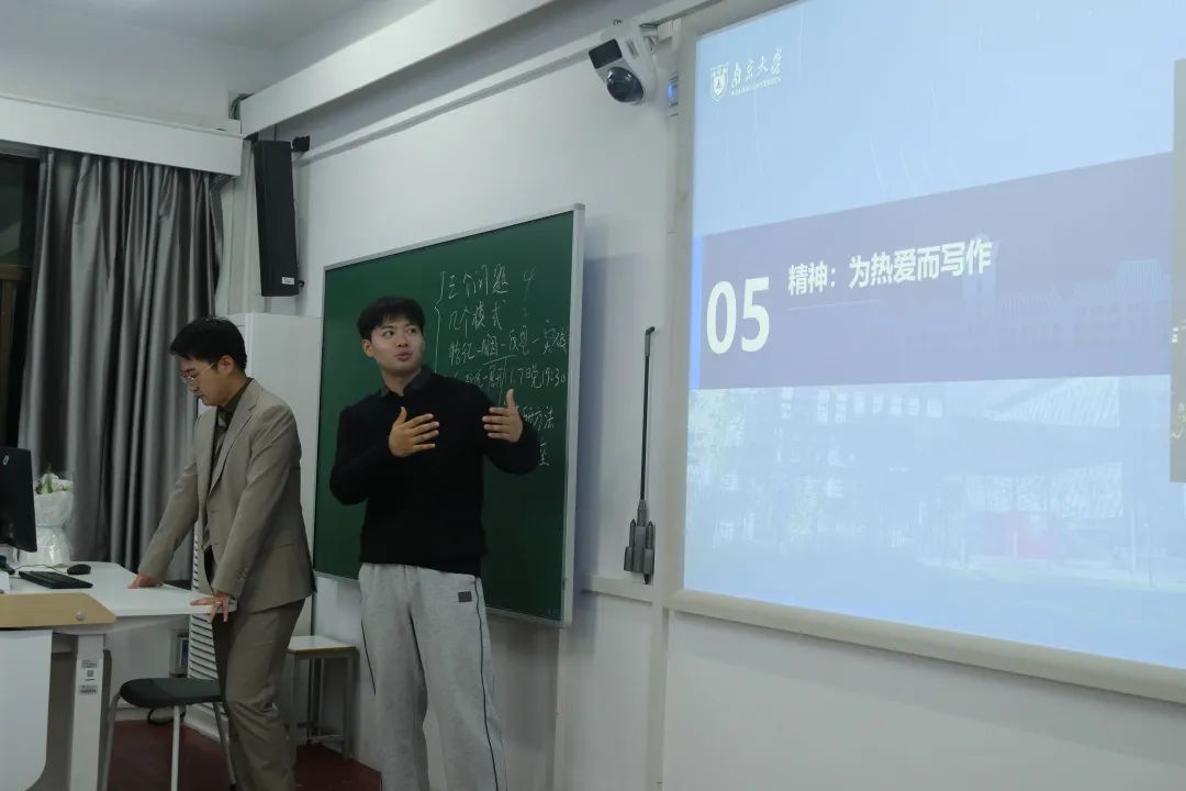 赵老师强调,警惕用语通顺是写文章的基本前提;资料扎实是文章写作的研究基础;用词精准是论文严谨性、科学性的体现;结构合理是文章论述充分的关键。其中,结构合理是四个要求中最难做到的。针对这一问题,赵老师演示了“三个问题”、“几个模式”、“特征-成因-反思-突破”“旧论新论和展开”等四个技巧,教好我们如何写出一篇好文章。
