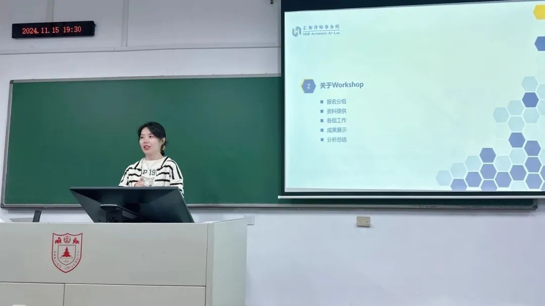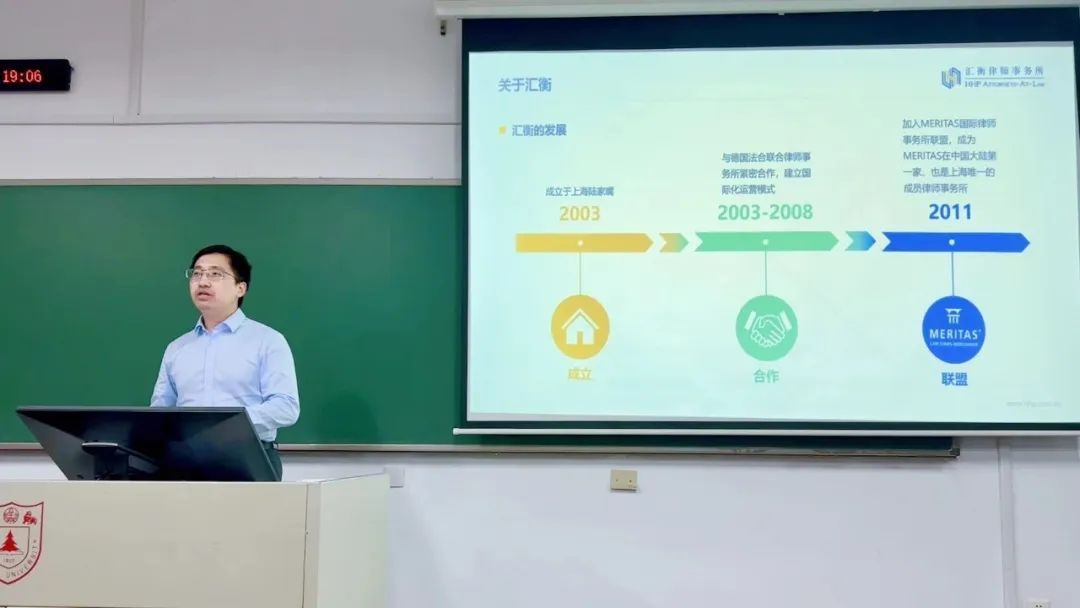 宣讲会一共分为三个部分。员工鲁帅杰律师、宿文嘉律师、合伙人马谦律师分别为大家带来了汇衡的基本介绍,本届Workshop的报名方式、评分规则和分组安排以及本次案例的解析。
