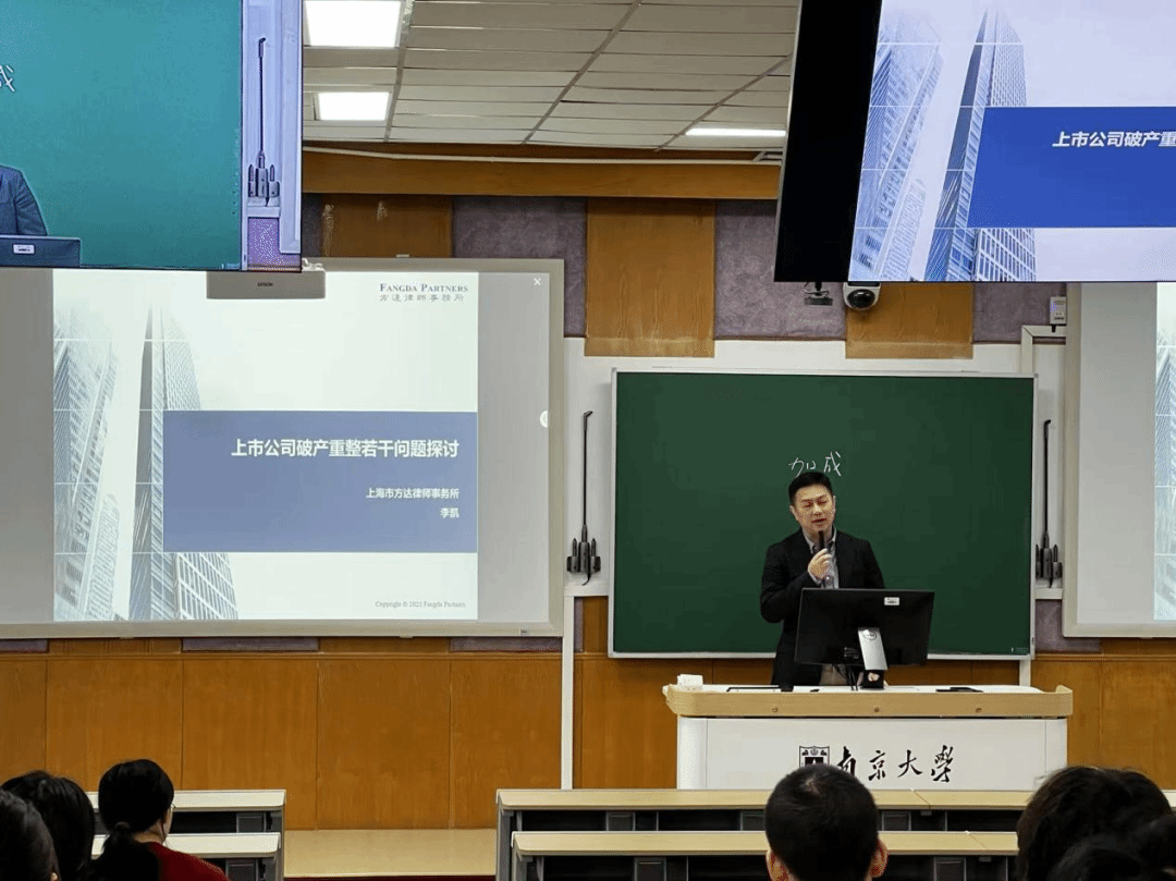 3月14日(周五)下午,第四次法本法硕“诊所法律教育”课程在浦口校区浦2-206教室顺利开展。课程由单锋教授主持,并邀请了上海市方达律师事务所李凯律师和阿普塔亚洲周轶法务总监进行授课。两位嘉宾分别就《上市公司破产重整若干问题探讨》与《跨国公司法务工作教会我什么》进行了专题分享,为同学们带来了一场知识与智慧的盛宴。