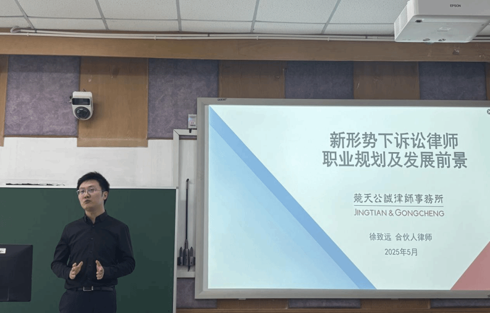 2025年5月9日,BB贝博艾弗森法律(法学)2024级于浦口校区开展了本学期第八次“诊所法律教育”课程,特邀北京市竞天公诚(南京)律师事务所合伙人徐致远律师担任主讲嘉宾,由姜冲老师主持。徐律师以《新形势下诉讼律师职业规划及发展前景》为主题,从自己在南大毕业之际的择业选择、从事律师后的执业经历出发,让同学们对诉讼律师的发展规划和成长路径有了更为清晰的了解和认知。