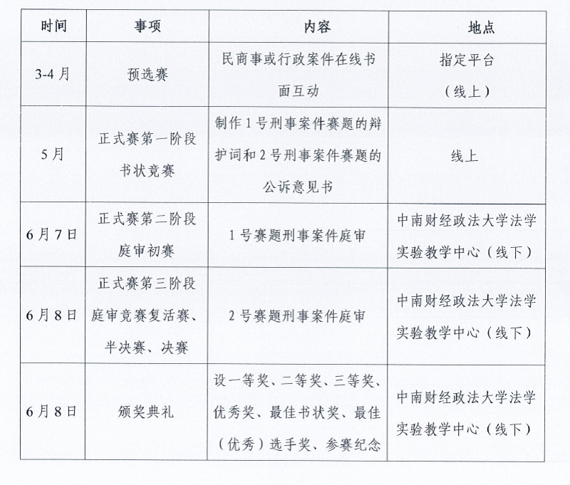 2、比赛形式:线上线下模拟法庭竞赛与书状竞赛相结合