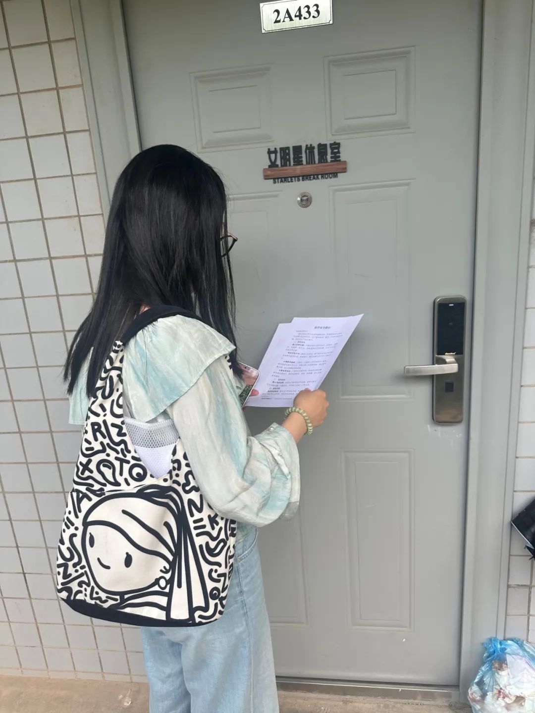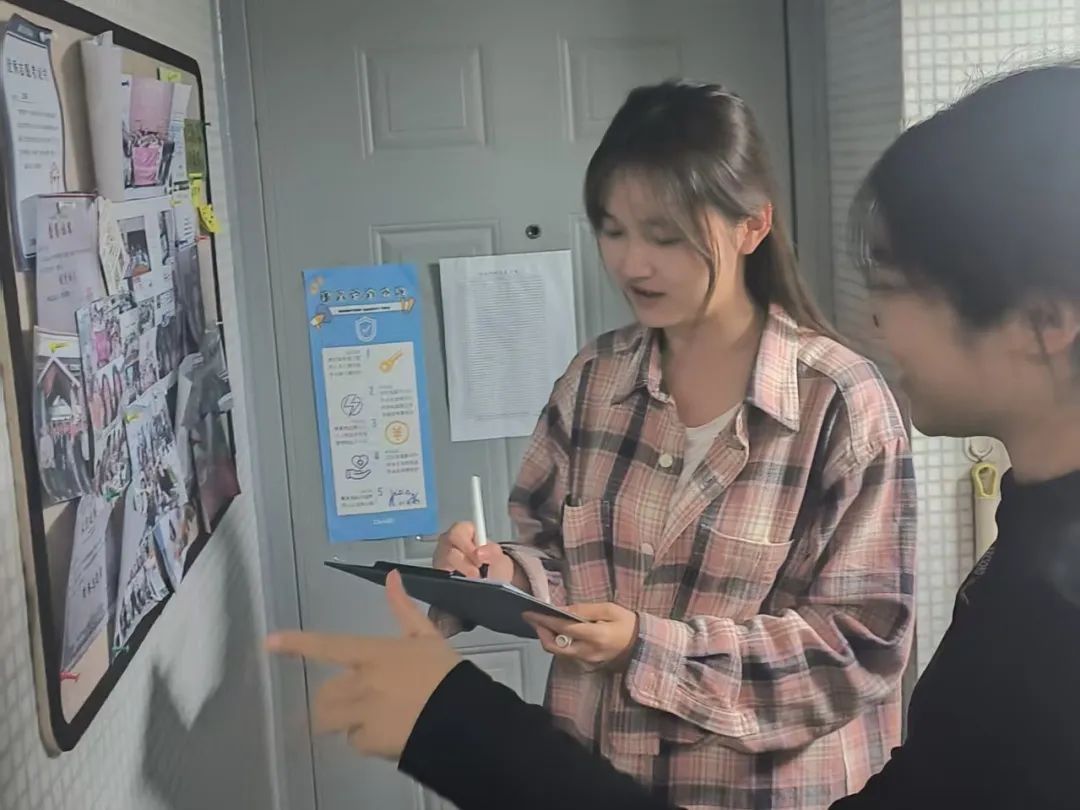 朋辈导师重点检查了消防设施、用电安全等情况,并填写调查表记录潜在隐患。