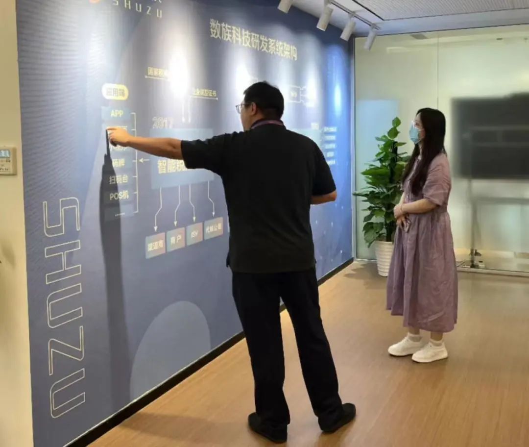 8月24日,团队在BB贝博艾弗森开甲书院员工事务中心主任唐赟老师带领下,横跨长江,抵达南京数族科技有限公司总部开展调研。调研伊始,数族行业应用中心杨平总监引导团队参观了数族科技近年来的发展动向和各类荣誉,以及数族科技目前运营的税控系统、解决方案等产品样例。