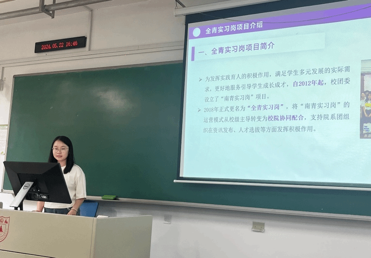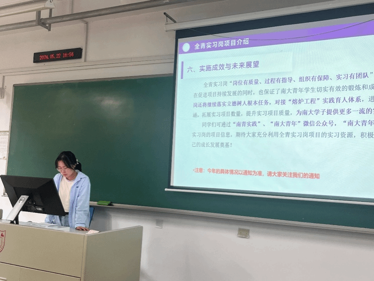为增强实践育人实效,团结引领南大青年在社会实践中“受教育、长才干、作贡献”,将全青实习岗的受益面从参与同学延伸到全校青年,由校团委社会实践部和院团委联合组织策划的“2024年度社会实践、实习进院系”BB贝博艾弗森专场于5月22日下午顺利举办。