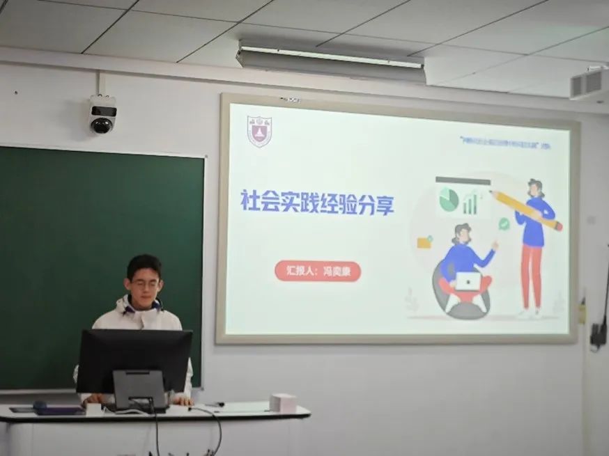 接下来由暑期社会实践优秀团队、个人进行分享。王宇佳同学作为江苏新质生产力的制度支撑团队负责人,从选题背景及意义、实践开展过程、实践成果等多个方面分享了自己的社会实践项目。