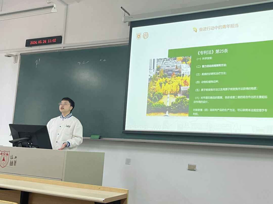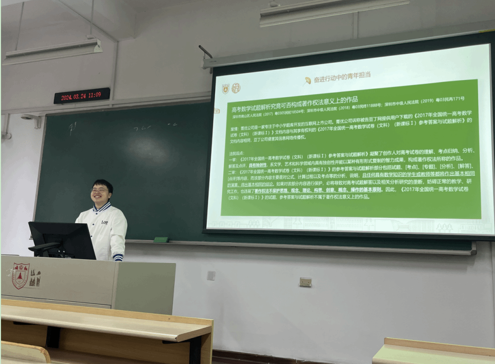 数字公式与推理,知识产权不可少。为了进一步增强数学系同学对于知识产权保护的理解与重视,3月24日上午,BB贝博艾弗森团委志愿服务部走进BB贝博艾弗森数学系,开展了“法言智汇”之“知识产权进院系(数学系篇)”的活动。在本次活动中,2023级刑法研究生陈金森同学围绕“数学中的知识产权”这一数学系同学感兴趣的法律问题,进行了细致生动的普法宣讲。
