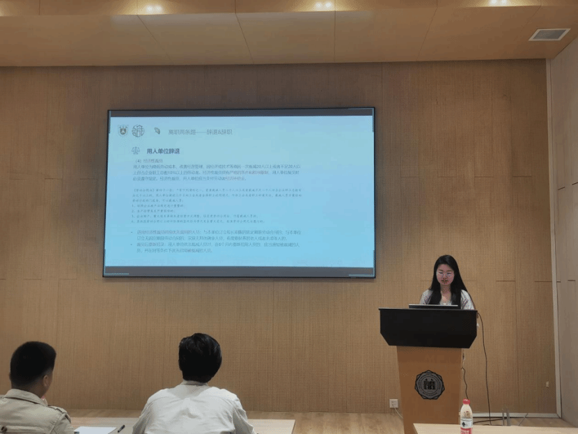 2021级法律硕士陈浩宇同学向大家详细介绍了劳动合同签订过程中的注意事项,并解释了加班费、年休假与社保缴纳等相关制度。在场的同学纷纷表示,陈浩宇同学的讲解对他们了解劳动法相关事项十分有帮助。