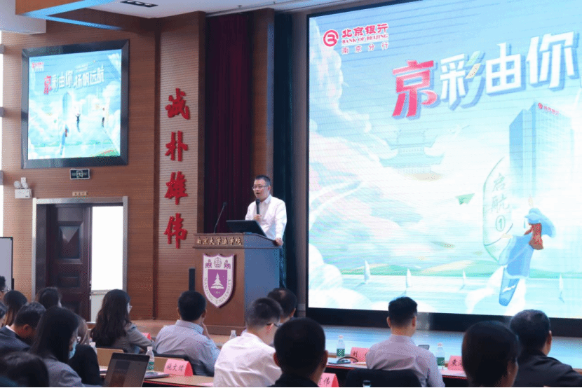 北京银行南京分行公司银行部总经理王非关注就业员工的需求,从北京银行南京分行整体背景规模、员工培养方案、待遇福利等方面进行了宣讲,如南京分行近年来扩大的招聘规模和涉及衣食住行多方面的福利待遇体系,之后对北京银行的启航实习方案进行了重点介绍,并欢迎各位同学投递简历。