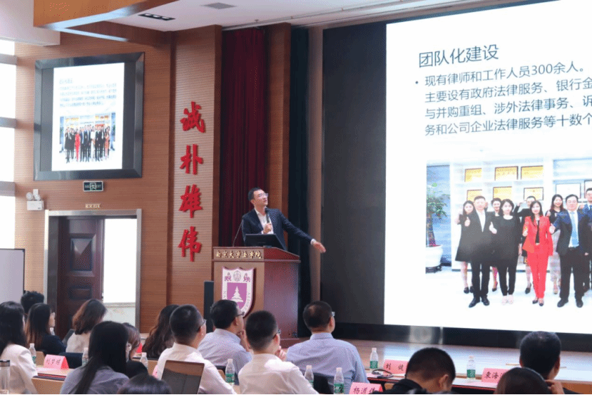 江苏新高的律师事务所合伙人律师郑沥为与王宇微分别从律所概况、青年律师培养计划与招聘计划两方面进行了宣传。一方面,郑律师对律所的发展历程、办公环境、所获荣誉、律所团队与专业化建设进行了介绍,并展示了律所对文化建设的重视与曾举办的多种活动。另一方面,王律师重点介绍了律所对青年律师的培养方案和升迁路径,并公布了招聘岗位和要求,鼓励广大同学积极投递简历。