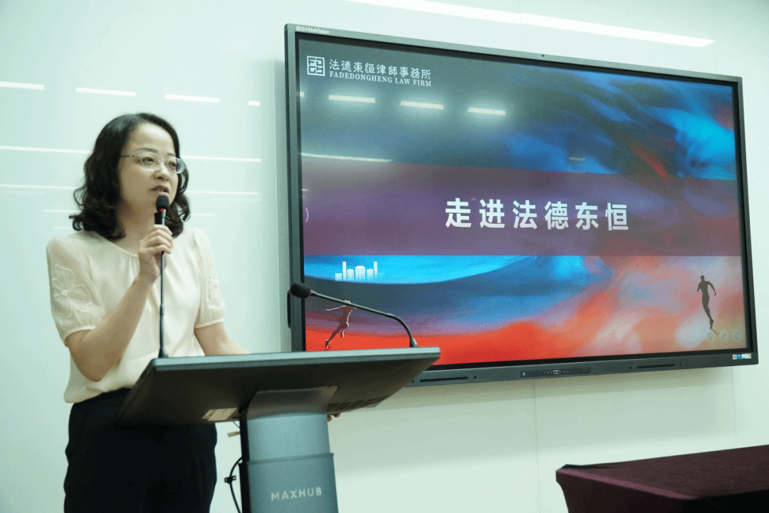 江苏法德东恒律师事务所人事经理茅蓉蓉女士从法德东恒的发展历史、律所荣誉、律所规模、人员结构等展开介绍。法德东恒律师事务所深耕江苏、布局长三角、辐射中国法律服务市场,在房地产、破产重整、投融资、数据网络与知识产权等业务领域均取得了不俗的成绩。法德东恒重视企业文化打造与专业人才培养,为青年律师成长提供明晰的发展路径。同时,律所即将迁入新办公大楼,为律师们提供更舒适的办公环境。