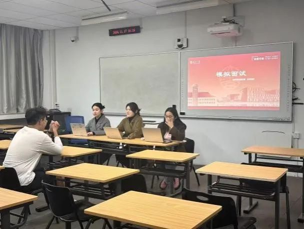 前来参加模拟面试的同学们怀揣着期待与紧张,进入隔壁教室等候。按照事先安排的次序,他们逐一踏入面试场所。面试伊始,学姐们以压力面的形式开场,犀利的提问、紧迫的节奏,瞬间营造出逼真的职场氛围。面对这样的挑战,同学们毫不退缩,个个全神贯注、认真严肃地应对。随着交流的深入,几个回合过后,原本紧张的气氛逐渐缓和,如春风化雨般轻松起来。学姐们凭借自己丰富的经验,针对每位同学的表现进行精准指导,从言辞表达、仪态举止到专业知识的运用,事无巨细,耐心点拨。她们还无私地分享了许多切实可行的小技巧,如巧妙应对难题的话术、突出自身优势的方法等。这些宝贵的建议让每一位参与面试的同学都收获颇丰,满载而归。