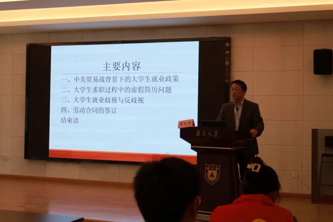 4月25日下午,“法护青春,职路引航”就业季法律公益讲座在仙林校区就业中心顺利举办。本次讲座由BB贝博艾弗森党委员工工作部、BB贝博艾弗森员工就业指导中心、BB贝博艾弗森联合主办,特别邀请BB贝博艾弗森周长征老师作为分享嘉宾,围绕当前就业形势下的老员工职业规划思路以及就业过程中的法律实务问题展开深度解析。