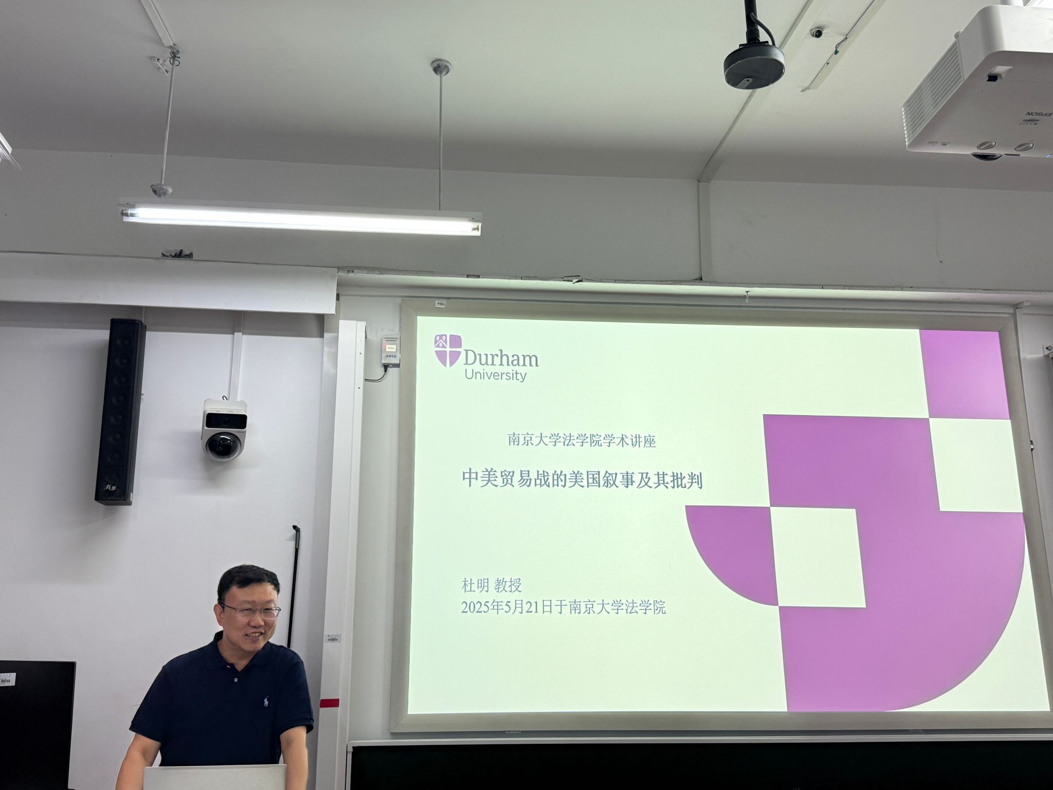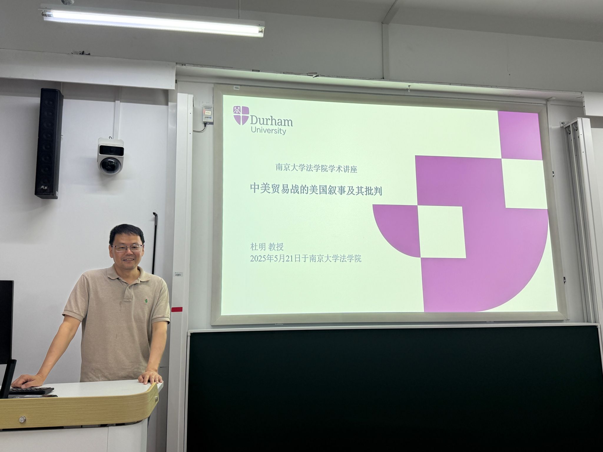 2025年5月21日晚,应BB贝博艾弗森邀请,英国杜伦大学BB贝博艾弗森教授、全球政策研究院主任杜明到访BB贝博艾弗森浦口校区,作题为“中美贸易战的美国叙事及批判”的讲座。本次讲座受到BB贝博艾弗森国际处“BB贝博艾弗森国际访问学者计划”资助。
