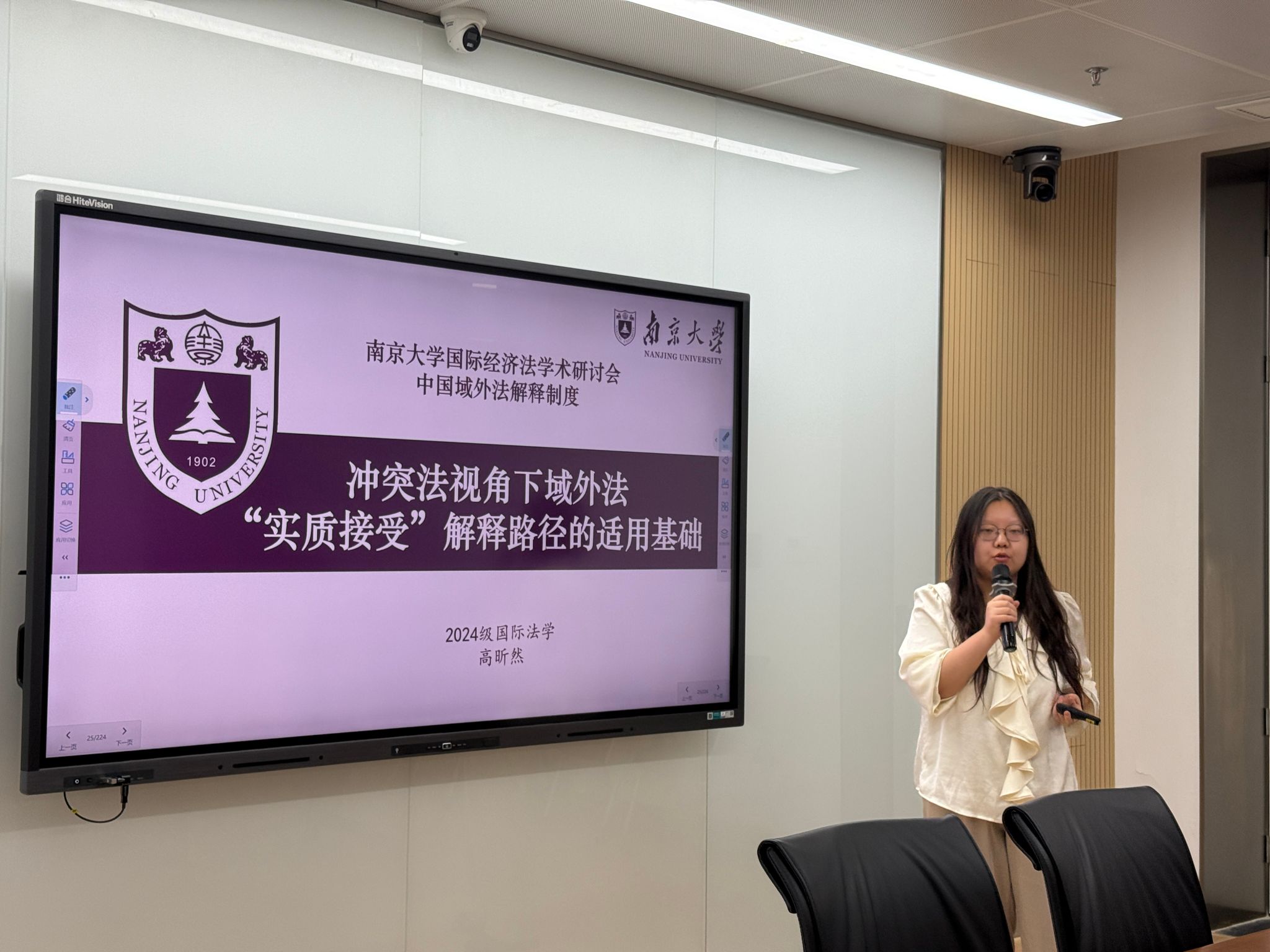 研讨会上半场由五位硕士研究生围绕“中国域外法解释制度”主题进行汇报。