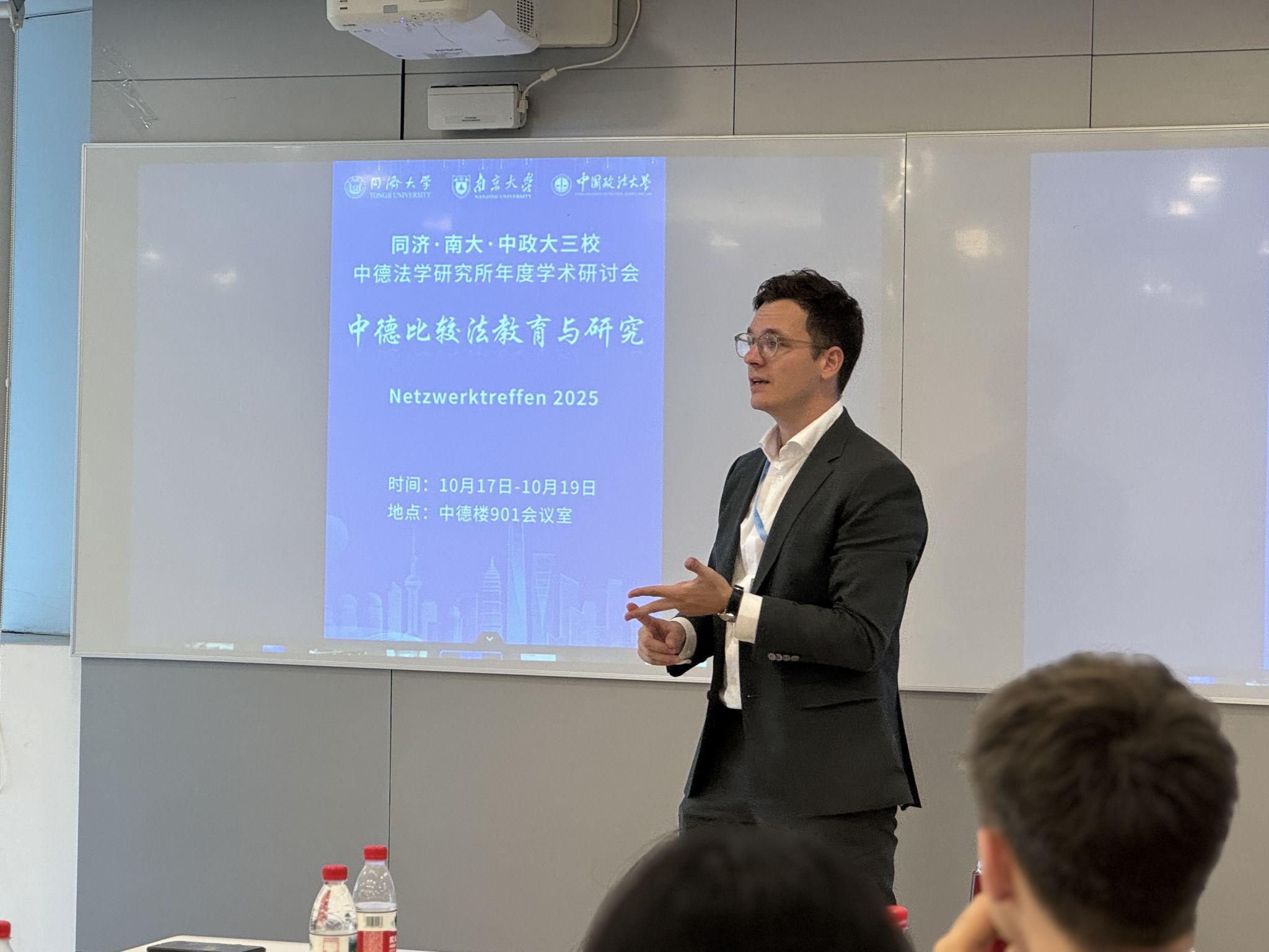 10月18日上午,2025年同济·南大·中政大三校中的法学研究所年度学术讨论会在同济大学四平路校区中德楼拉开帷幕。本次学术研讨会由同济大学中德国际经济法研究所德方所长Sven Klose主持。