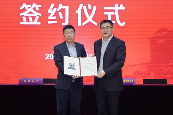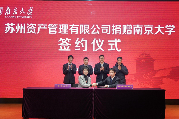 教育发展基金会秘书长张晓东与苏州资产管理有限公司党委副书记翁浩签署捐赠协议。