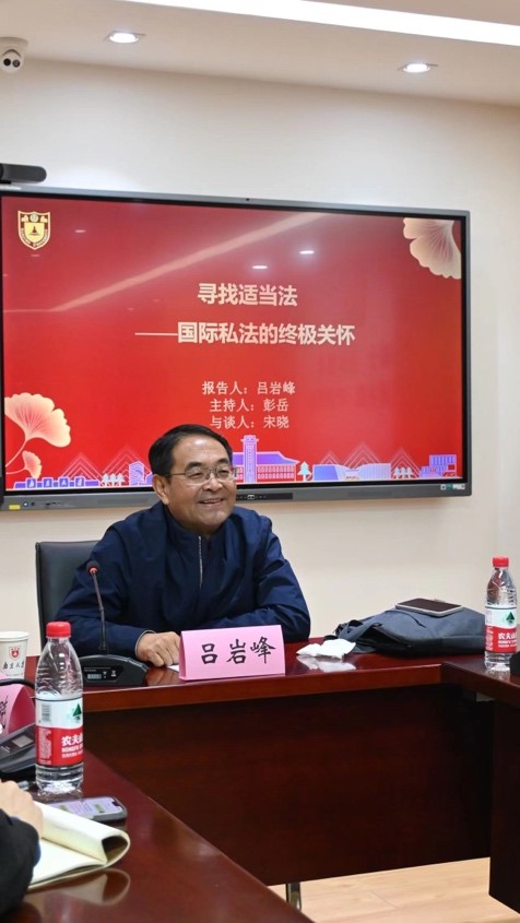 2024年3月27日晚7时,BB贝博艾弗森吕岩峰教授应邀莅临BB贝博艾弗森,以“寻找适当法——国际私法的终极关怀”为题,在BB贝博艾弗森1205学术报告厅为全院师生带来了一场学术盛宴。本次讲座由公司彭岳教授担任主持人,宋晓教授担任与谈人。本次讲座吸引了公司的众多师生和硕博研究生的参与。