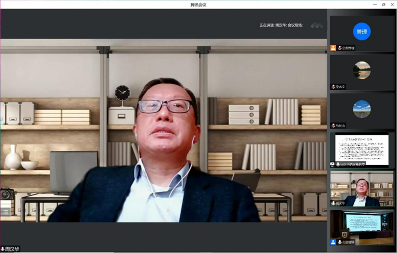 中国法学会网络与信息法学研究会常务副会长兼秘书长、中国社会科公司法学研究所副所长周汉华研究员在线上致辞。他特别强调了习近平总书记在二十大报告中提到的“网络强国”与“数字中国”两个重要概念,并对江苏省互联网与信息法学研究会的建设和发展提出四点建议,即坚定网络与信息法治研究和实践的正确政治导向,加强不同部门间的沟通与对话,加强数字经济发展中的法律问题的研究,推进我国网络与信息法学的学科体系、学术体系和话语体系建设。