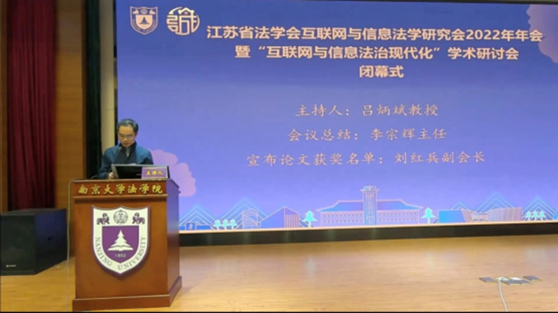 最后,江苏省法学会互联网与信息法学研究会副会长、南京市中级人民法院审判委员会专职委员刘红兵宣布了本次研讨会优秀论文的获奖名单。