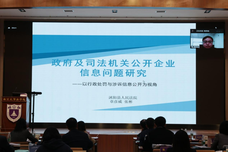 沭阳县人民法院庭长章彦威以《政府及司法机关公开企业信息问题研究》为题进行发言,指出在当前企业法治意识不强、抵御风险能力比较弱的情形下,对企业特别是中小微企业的发展要给予保护和支持,行政机关和司法机关公开的企业信息应当适当,尽量减少因行政行为和司法行为给企业信用造成不必要的损害。