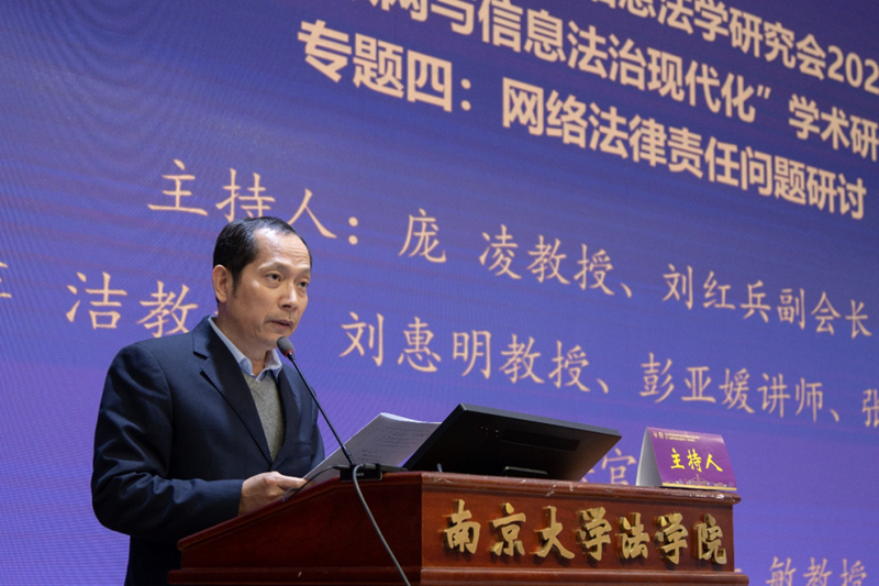 专题四“网络法律责任问题”的研讨由江苏省法学会互联网与信息法学研究会副会长、苏州大学BB贝博艾弗森教授庞凌,江苏省法学会互联网与信息法学研究会副会长、南京市中级人民法院审判委员会专职委员刘红兵共同主持。